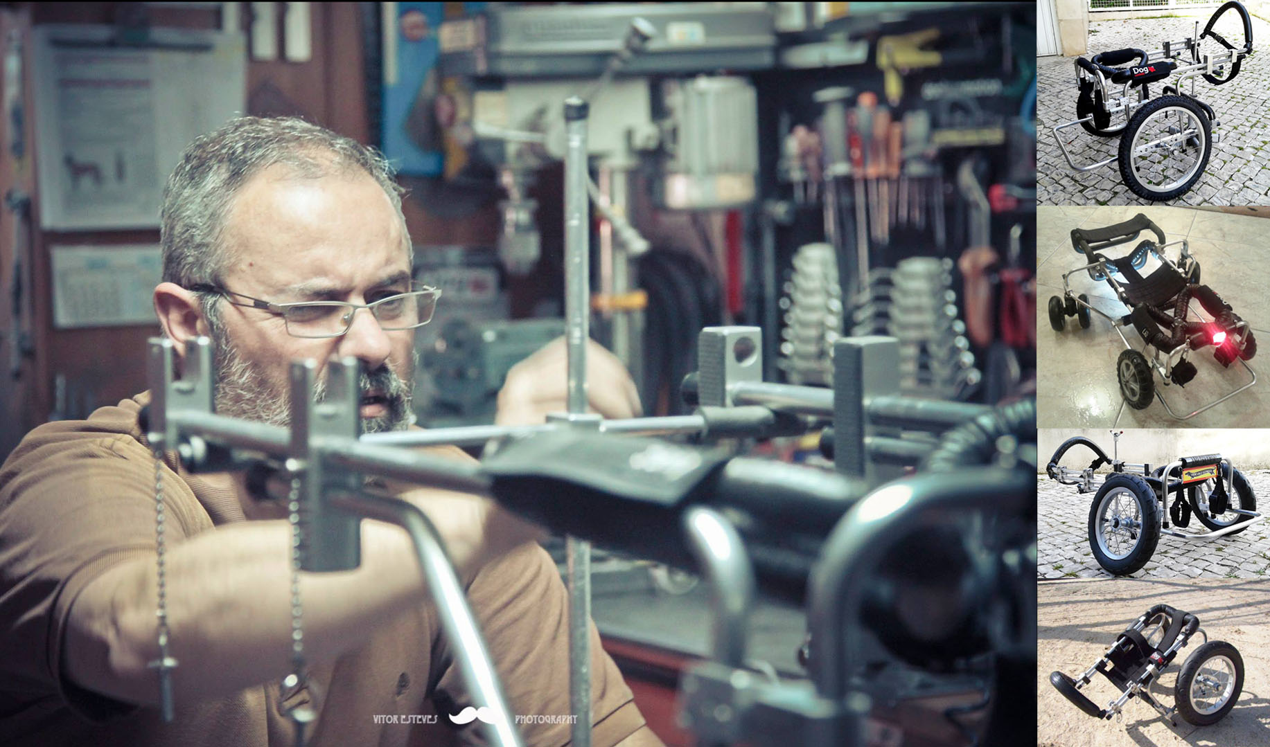 Os nossos Auxiliares de Locomoção são cuidadosamente projectados e montados, tendo como principal objectivo, o conforto e a mobilidade dos seus utilizadores. Construídos com 2 rodas na versão standard, para suporte anterior ou posterior, contrabalançada, ou ainda com 4 rodas na versão para suporte integral, são por esse motivo, com as suas múltiplas variantes, totalmente personalizados de acordo com a patologia apresentada pelos nossos amigos. Com uma estrutura tubular extremamente leve, e uniões maquinadas com recurso à moderna tecnologia CNC, integralmente em Alumínio, com travamentos e eixos em Inox, dispõe ainda, dependendo da dimensão e tipo de utilização, de rodas devidamente dimensionadas em polipropileno com revestimento de borracha macia de efeito amortecedor, ou pneus cardados com câmara-de-ar e jantes equipadas com rolamentos de modo a proporcionar um deslizamento suave e simultaneamente uma excelente tracção. Foi também dada especial atenção ao conforto do animal sendo todas as superfícies de contacto com o mesmo em espuma elastomérica de média densidade e estrutura fechada, tendo em alguns casos, zonas de suporte especiais em neoprene revestido. Podem ainda ser equipados com dispositivos especiais nomeadamente deflectores correctivos de postura e movimento, de trajectória e acessórios eléctricos de iluminação e sinalização.